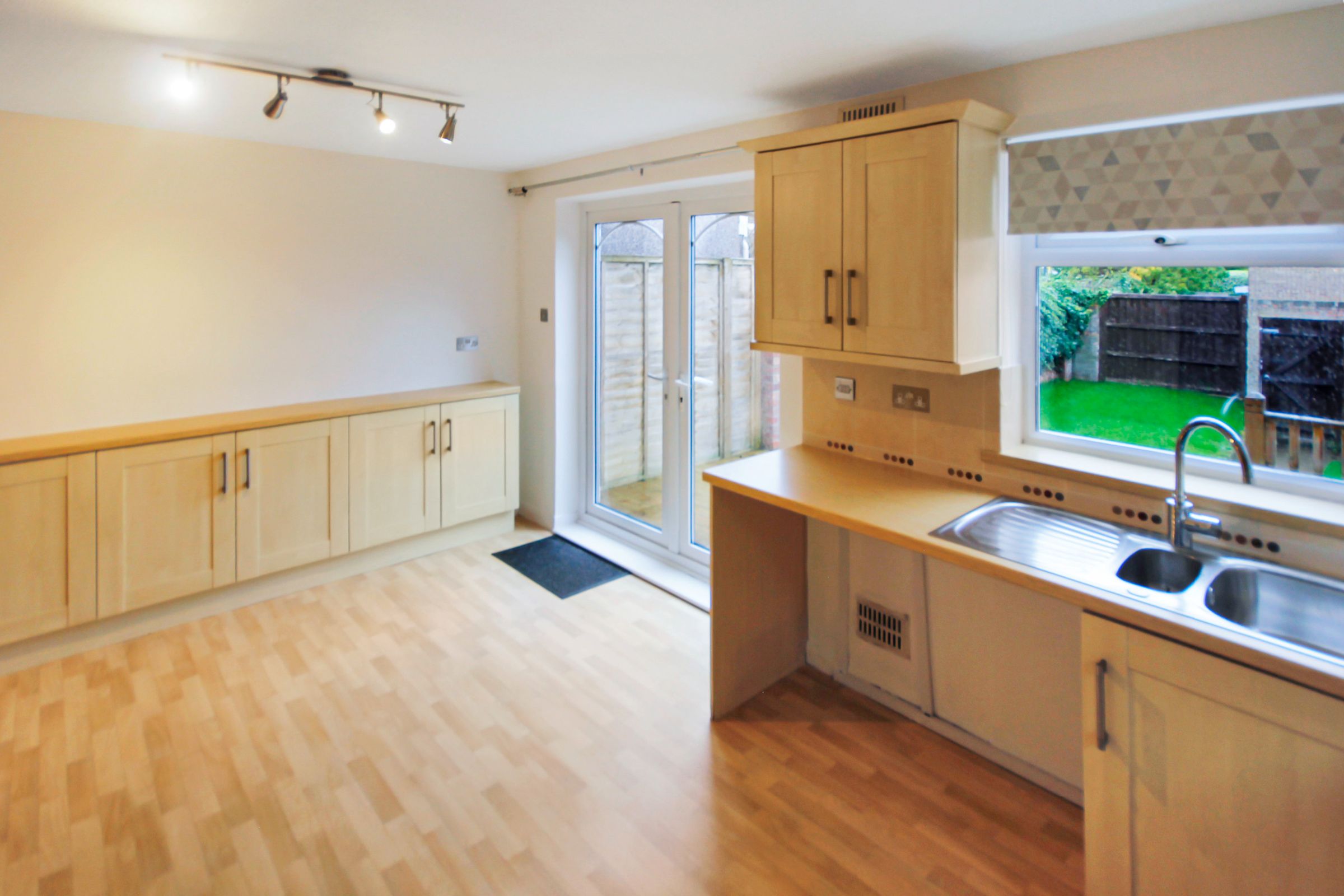 Spacious kitchen/diner with ample storage and dining space and patio doors leading to the garden